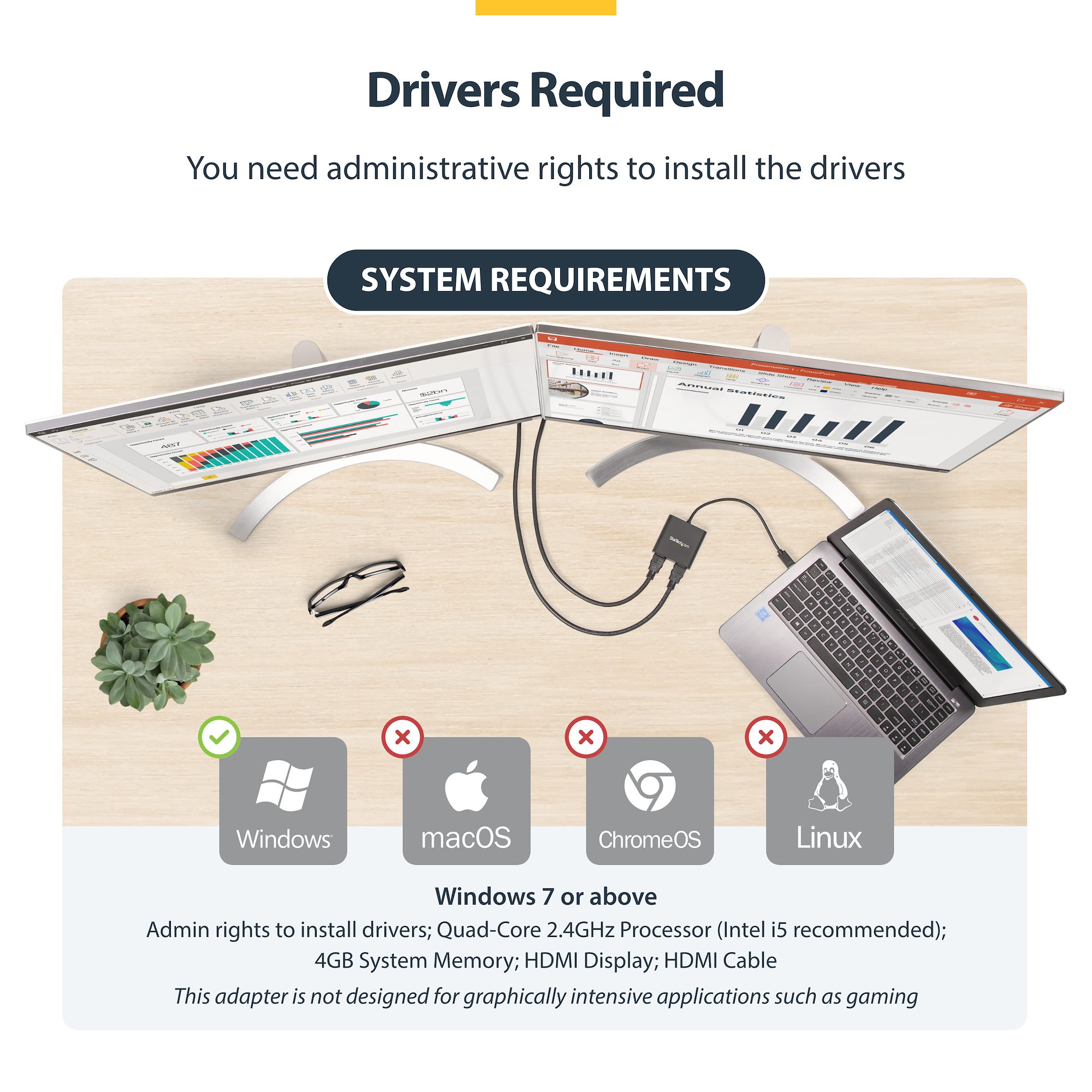 USB 3.0 to Dual HDMI Adapter, USB to 2x HDMI Monitor Converter for Windows (no support for macOS/ChromeOS/Linux) – TAA