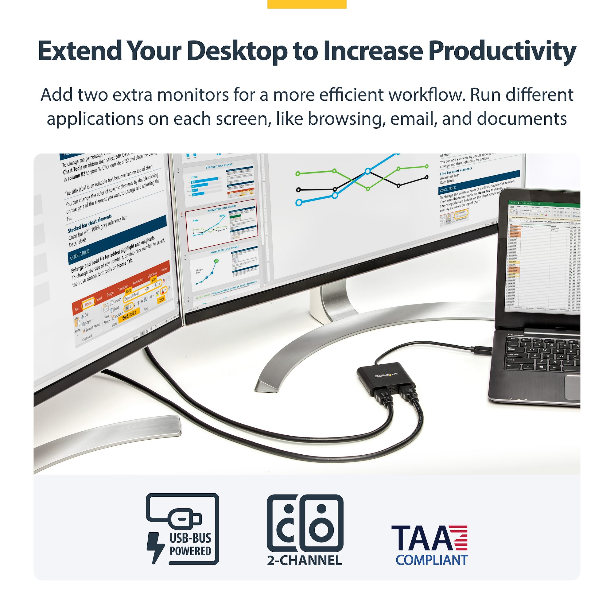 - INCREASE YOUR PRODUCTIVITY: USB to Dual HDMI monitor adapter lets you extend your desktop by adding up to two HDMI monitors to your laptop or desktop computer; Ideal for your workstation setup in the office or working from home